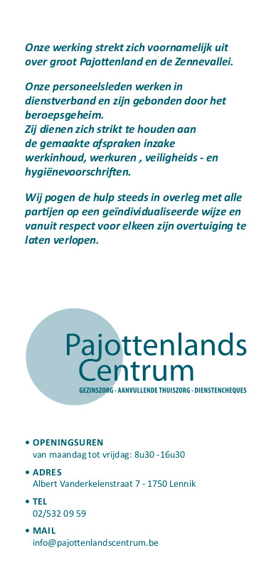 Het Pajottenlands Centrum biedt volgende diensten aan: